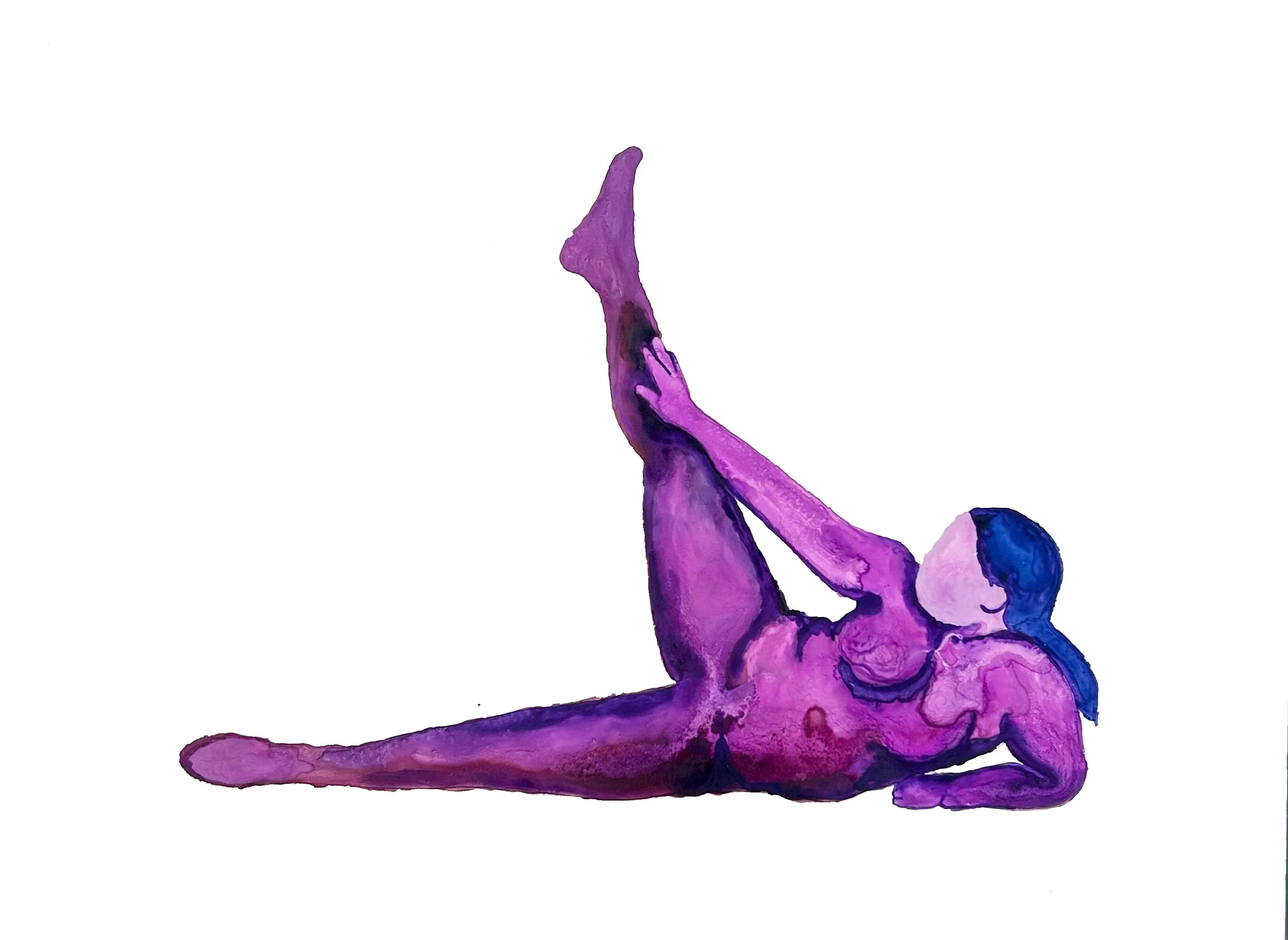 Stretch, 9 x 12 inches, watercolor on Yupo paper, 2023